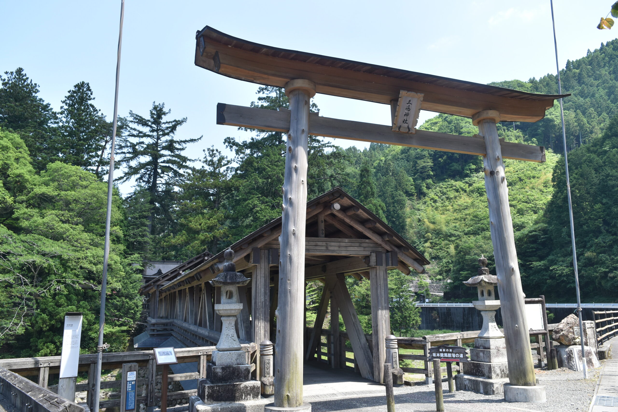《コース例》梼原町総合庁舎→ゆすはら座→雲の上の図書館・YURURIゆすはら(外観のみ)→神幸橋・三嶋神社→まちの駅「ゆすはら」→雲の上のギャラリー