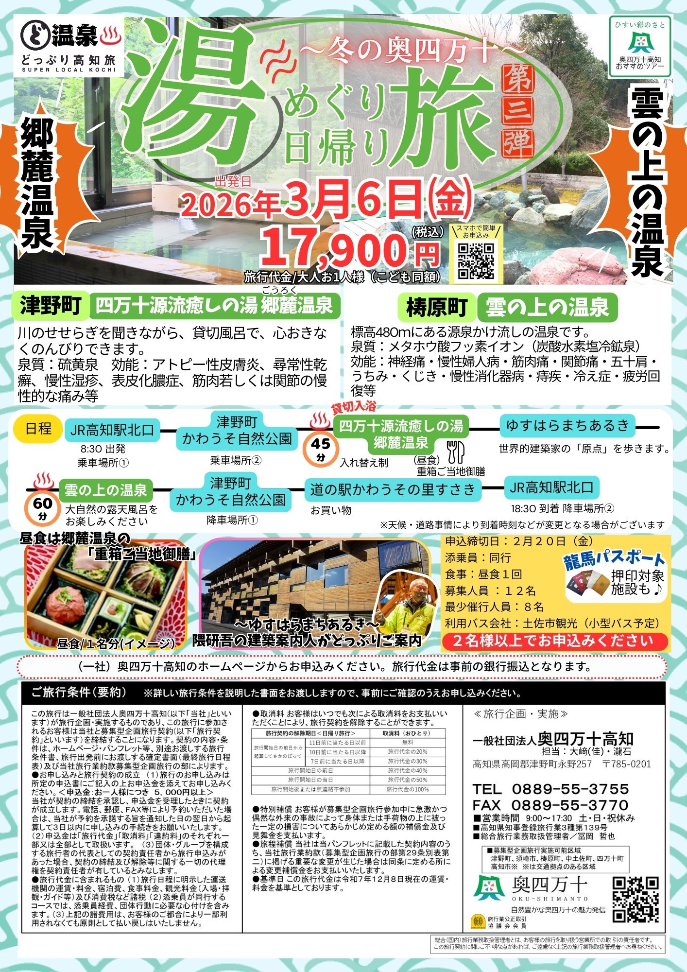 春を感じる「春のぽかぽか日帰り旅」(2026年3月3日[火])と、温泉を満喫する「冬の奥四万十 湯めぐり日帰り旅」(2026年3月6日[金])の参加者を募集しています!