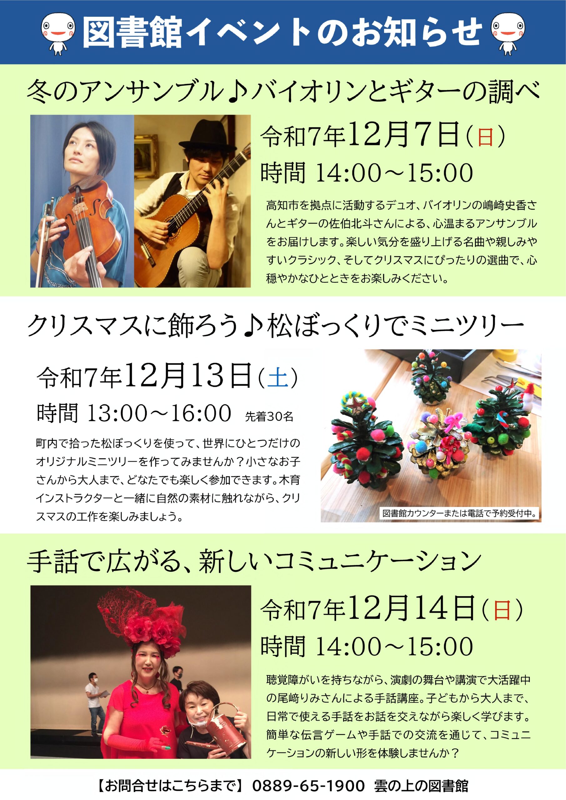 イベントに関するお問い合わせは雲の上の図書館〈電話〉0889-65-1900までお電話ください