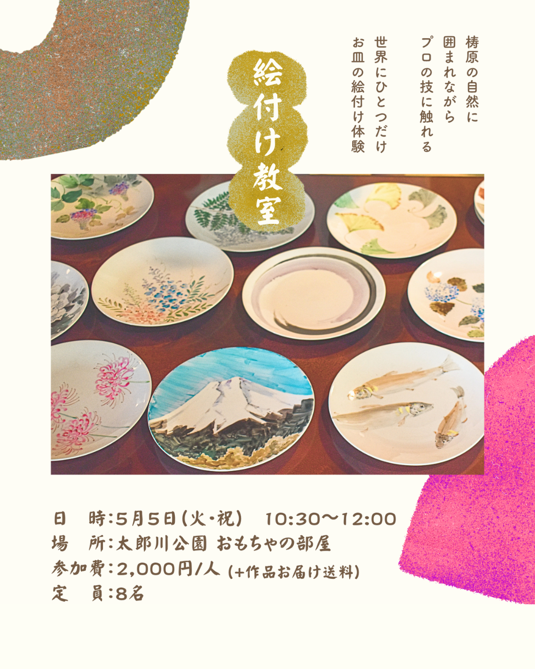 5月5日(火・祝)、太郎川公園内にて「お皿の絵付け教室」が開催されます🎨